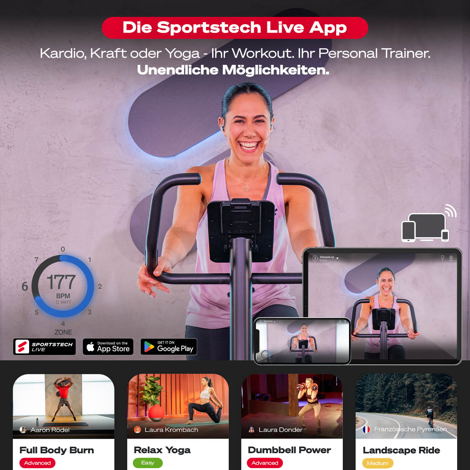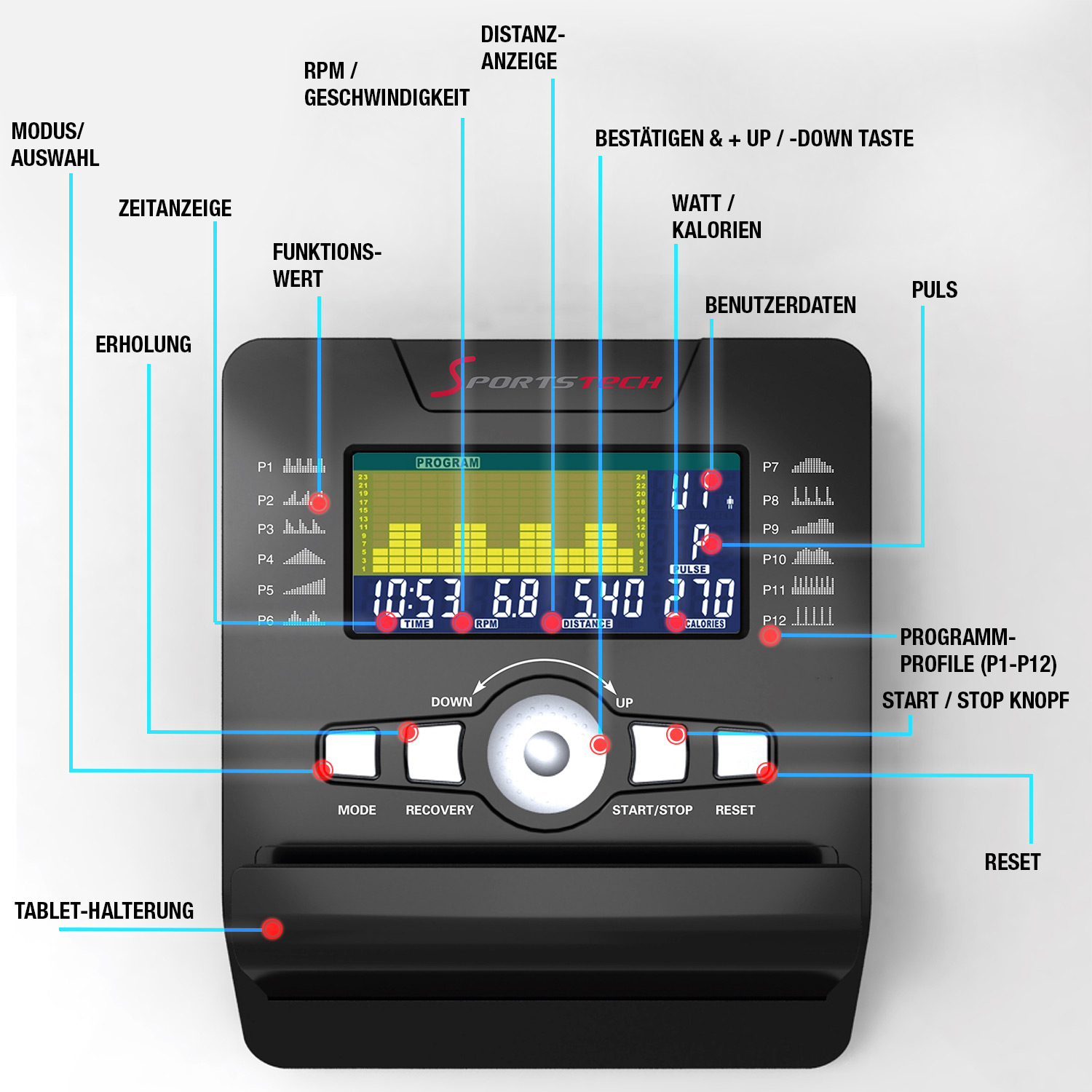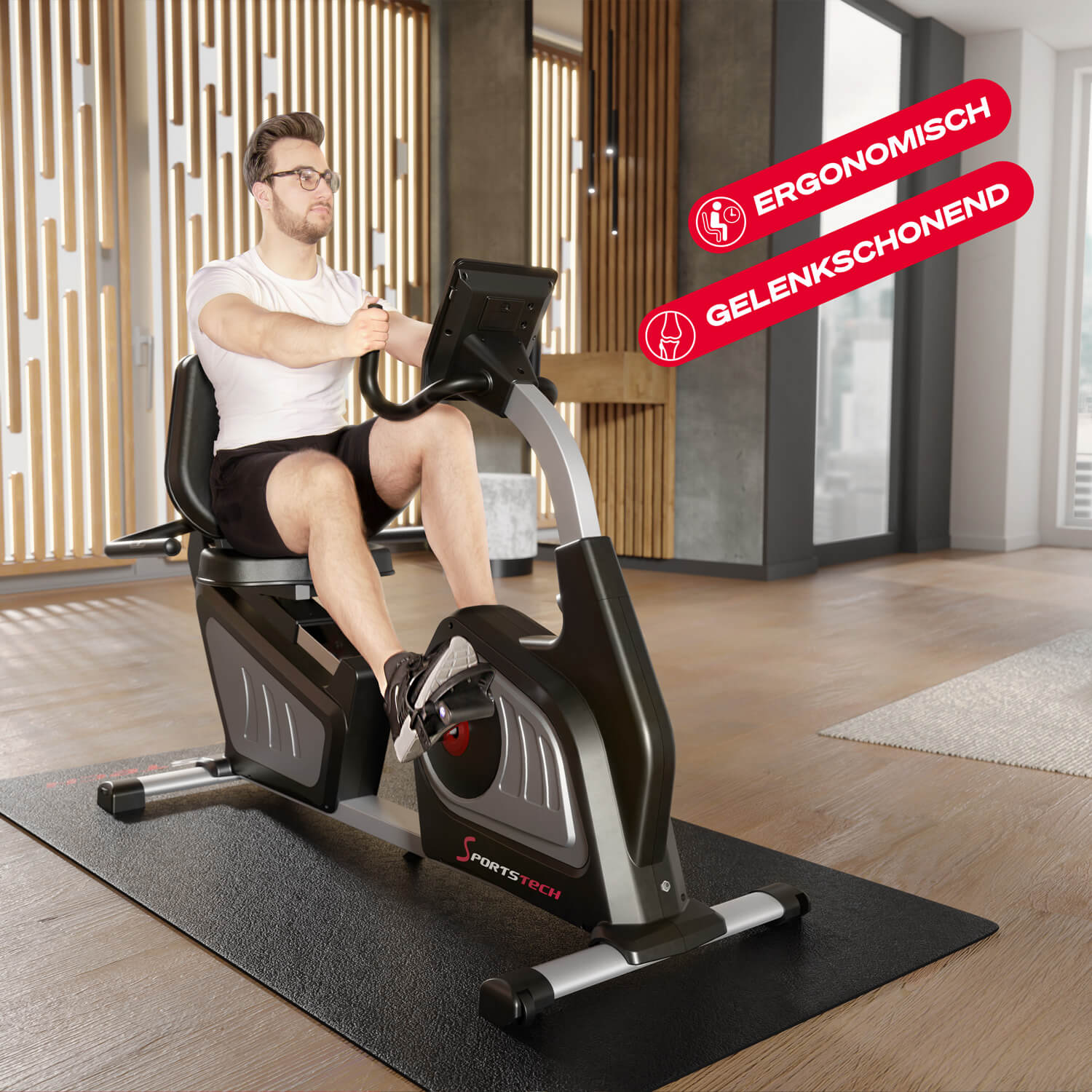 Empfohlen: Verwenden Sie dauerhaft eine Sportstech-Bodenschutzmatte unter dem Gerät – rutschfest und bodenschonend.