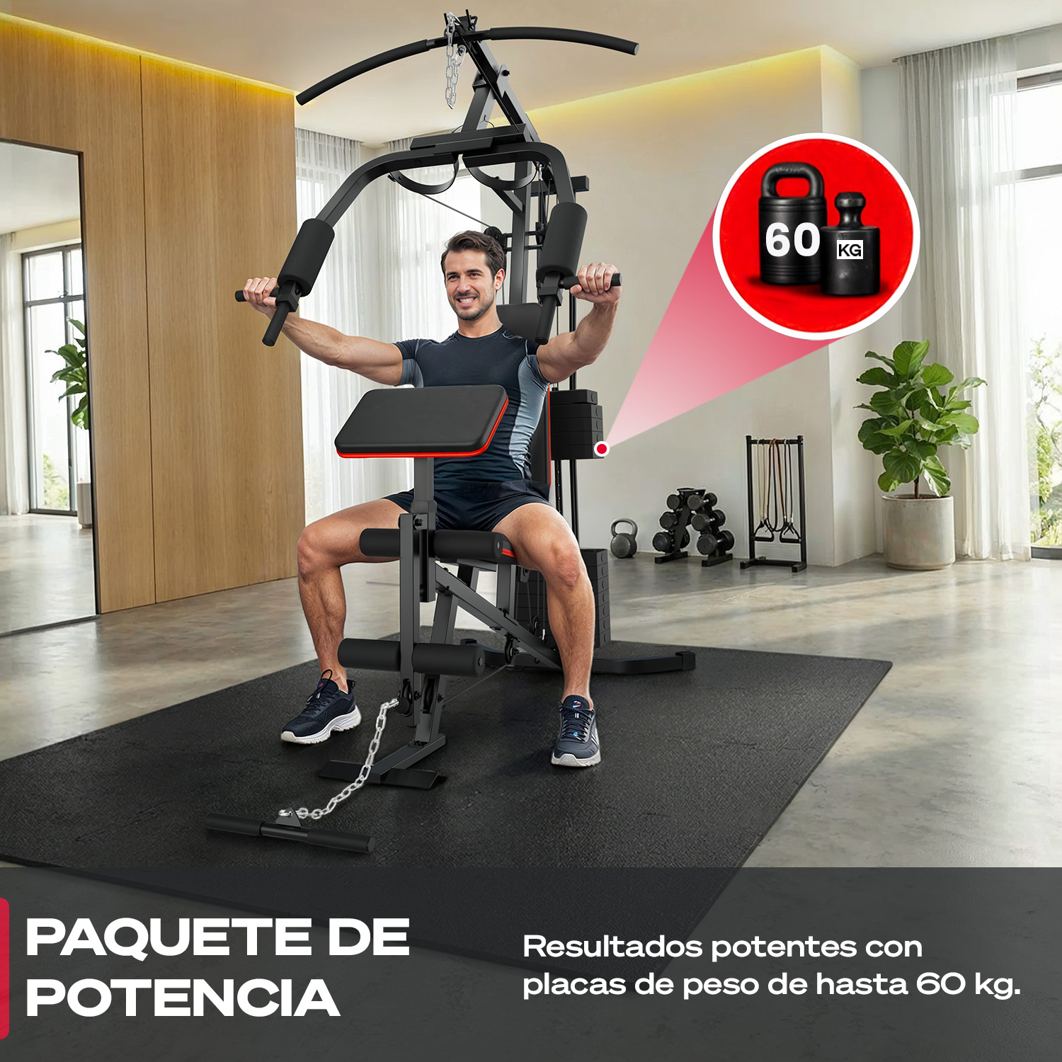 Una estación de fuerza es un equipo de fitness multifuncional diseñado para el entrenamiento completo del cuerpo. Permite entrenar eficazmente todos los grupos musculares en casa, desde el pecho y la espalda hasta los brazos y las piernas.